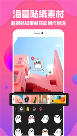 2、视频可以随意截取组合,一键添加音乐、动图、贴纸、文字,让你的短视频更加生动有趣;